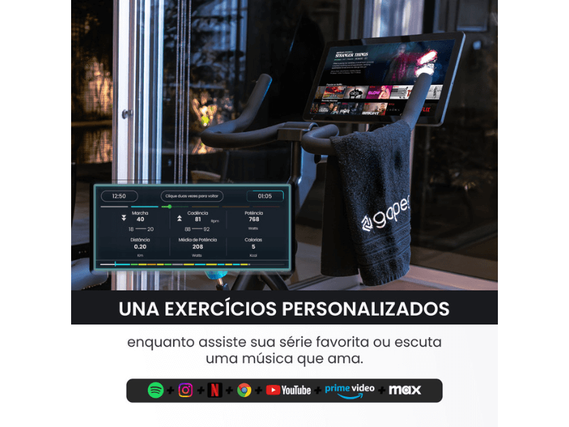 - Conectividade Avançada: Conecte-se a aplicativos de treino ou streaming com personalização dos exercícios e acompanhamento de desempenho em tempo real.