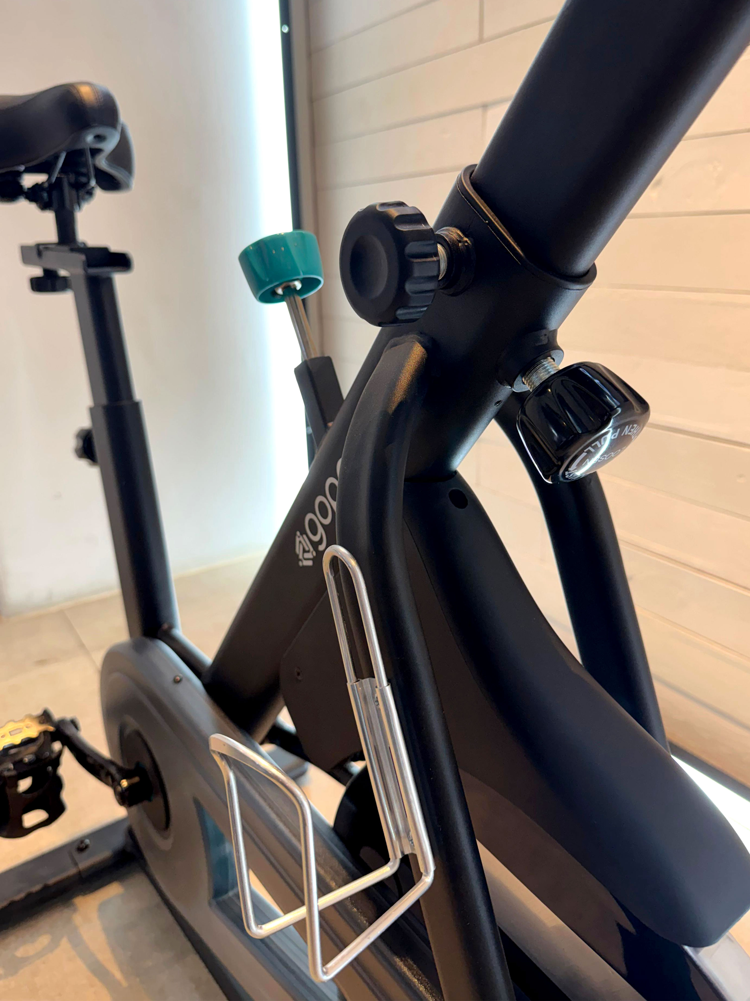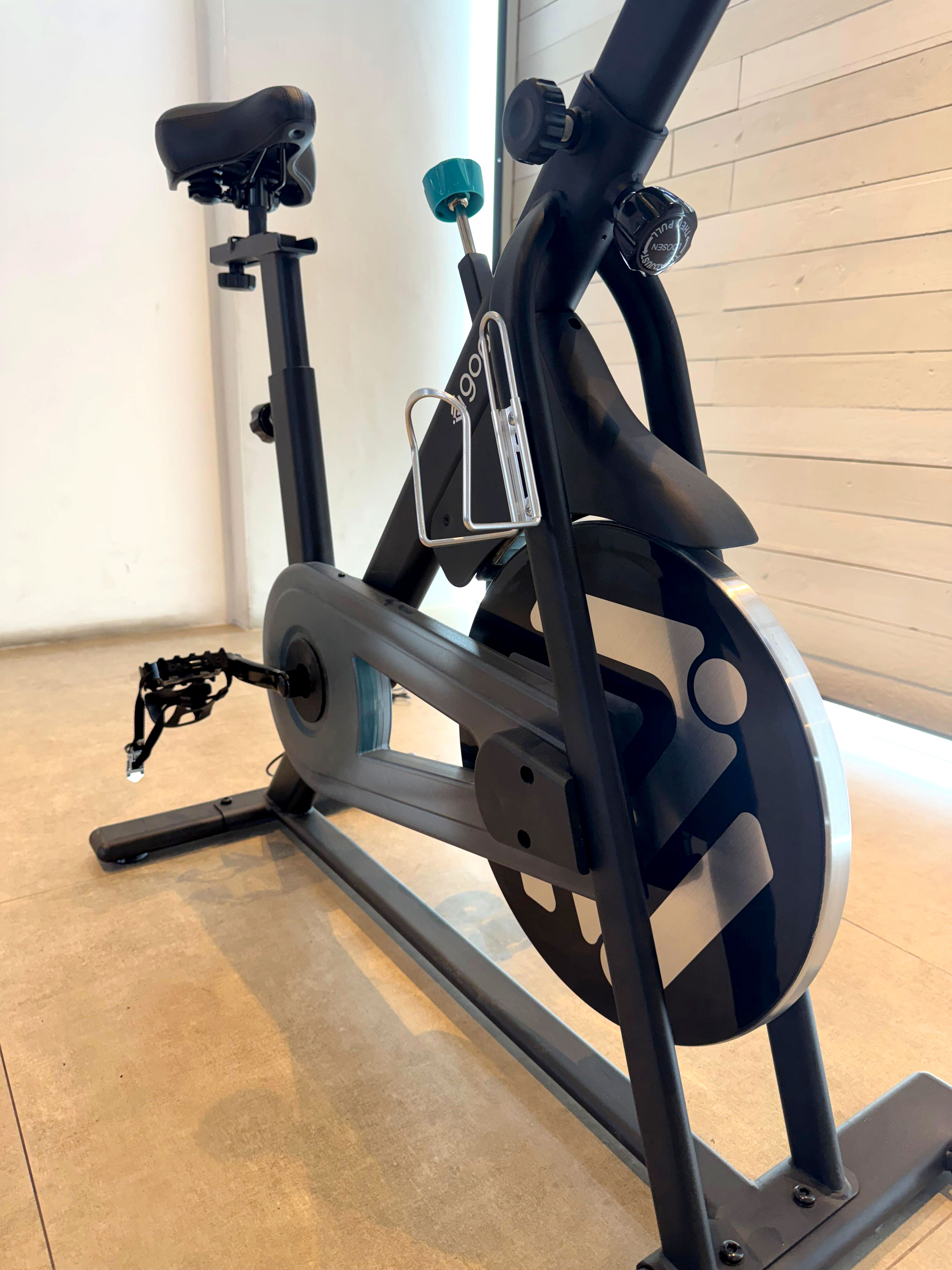- Ajustes Precisos: Altura do assento e guidão ajustáveis, com resistência magnética suave e eficiente, comum em bikes de alta performance para spinning.