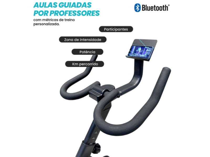 - Conectividade: monitore velocidade, distância, calorias e evolução do seu treino diretamente pelo aplicativo no seu celular ou tablet.